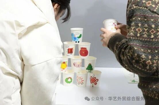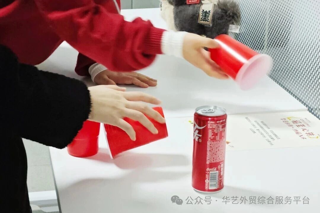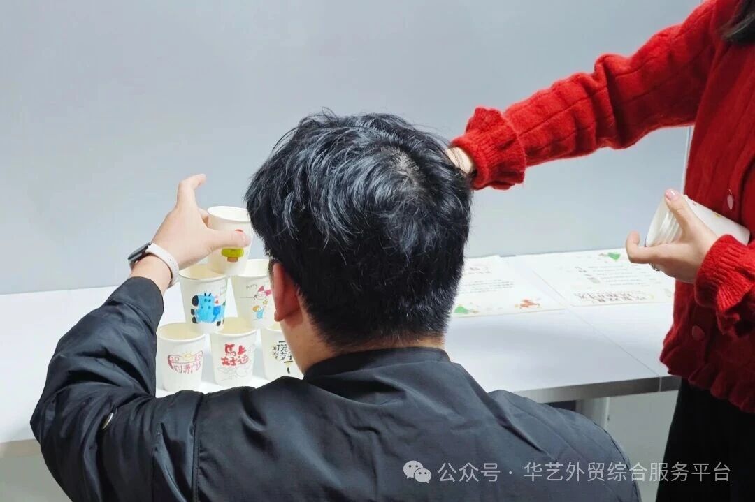 堆叠的纸杯,如同我们共同搭建的每一个成果,需要耐心、精准与彼此的信任。金字塔稳稳立住的瞬间,就是大家共同赢得的第一份“新年好运”。